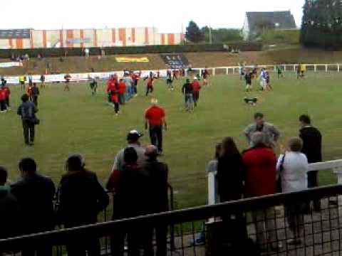 Envahissement du terrain a la fin du match.