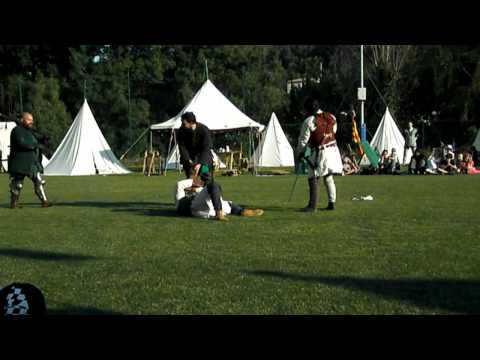 Reconstitution de combats par la compagnie Lobos Negros. Vidéos prises lors du festival médiéval Lou Mirabeou aux Pennes Mirabeau le samedi 21 mai 2011. Film...
