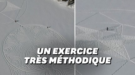 Pour échapper au confinement, cet artiste de l'Ontario a créé ces œuvres géantes avec ses raquettes de neige.