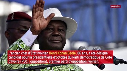 L'ancien chef d'État ivoirien Henri Konan Bédié, 86 ans, a été désigné candidat pour la présidentielle d'octobre du Parti démocratique de Côte d'Ivoire (PDCI, opposition), premier parti d'opposition ivoirien avec 99,7 % des voix à l'issue d'une convention tenue dimanche dernier. « C'est un véritable plébiscite », a déclaré le héros du jour, HKB, comme on le surnomme en Côte d'Ivoire. « La joie qui m'anime en ce jour est immense. Je suis heureux et fier d'avoir été élu comme candidat du PDCI », a-t-il ensuite ajouté alors que la seule autre candidature, celle de Kouadio Konan Bertin, avait été invalidée avant le vote.