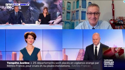 Lors de son allocution, le Premier ministre a affirmé que nous pouvons encore éviter le confinement. Compte tenu de l'évolution des chiffres, cette option pourrait être remise en cause. Si on arrive à vacciner tout le monde avant l'été, la France serait peut-être débarrassée de la maladie. Faut-il y croire ? Faut-il reconfiner ? Peut-on compter sur le civisme des Français ? - Avec: Pr Antoine Flahault, épidémiologiste et directeur de l'Institut de santé globale à l'UNIGE. Dominique Carlach', porte-parole du Medef. Et Philippe Corbé, chef du service politique de BFMTV. – Focus Première, du lundi 1er février 2021, sur BFMTV.