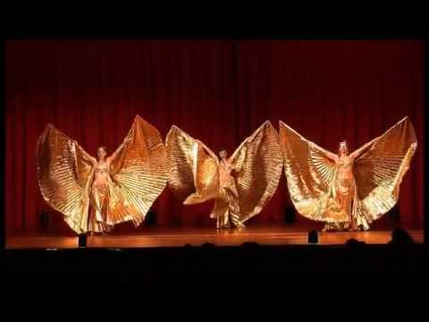 Danse orientale égyptienne. Ailes d'Isis et percussions. Chorégraphie : Leila. Danseuses : Caroline, Cléa et Christine. Gala 2013 à Perpignan.