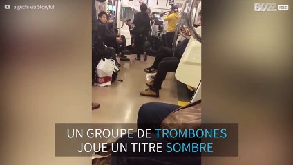 Des musiciens jouent du trombone dans le métro de Tokyo