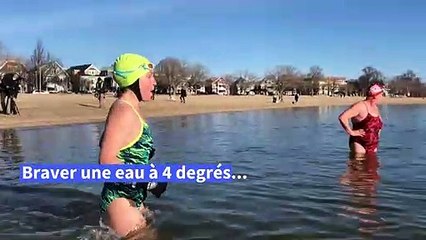 Des baigneurs plongent dans l'océan glacial au sud de Boston, dans le Massachusetts, pour marquer la nouvelle année. L'évènement annuel a été annulé en raison de la pandémie de Covid-19, mais des nageurs braver quand même l'eau à 4°C.