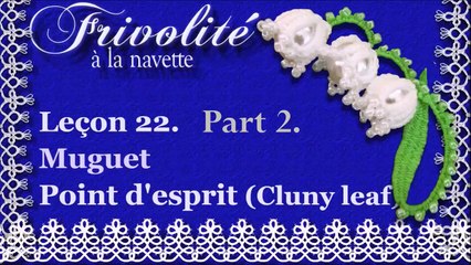 Dans ce tutoriel détaillé de la leçon de frivolité aux navettes 22, on fabrique un joli brin de muguet avec des perles. Dans cette leçon, on apprend à tisser le point d'esprit (Cluny leaf). On révise également le double noeud, des raccords, des anneaux et des arceaux, comment rentrer le fil de départ au début du travail et le fil de fin à l'aiguille, comment insérer des perles de rocaille et pacer une perle à l'intérieur d'une clochette. Pour que vos dentelles soient impeccables !