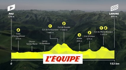 VIDÉO CYCLISME - L'enchaînement brutal des cols de la Hourcère et de Soudet, plantés bien au milieu de l'étape (11 km à 8,8 % suivis de 3,8 km à 8,5 %, à peine entrecoupés d'une descente de 5 km) avant que le col de Marie Blanque et ses 7,7 km à 8,6 % s'ajoute au tableau dans le dernier tiers de l'étape, concluent une première semaine de Tour particulièrement marquée par la montagne, de façon inédite dans l'histoire moderne de l'épreuve.
