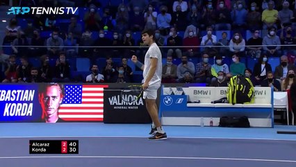 Après Jannik Sinner, Carlos Alcaraz est devenu samedi le deuxième joueur de 18 ans à remporter le Masters Next Gen (moins de 21 ans) en disposant de Sebastian Korda (4-3 (5), 4-2, 4-2) en 1h22.