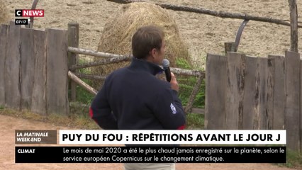 Avant l'ouverture du Puy du Fou, les artistes sont obligés d'enchainer les répétition, la raison : le spectacle doit être modifié. Avec l'épidémie, le port du masque est obligatoire, et les chorégraphies ne peuvent plus être les mêmes. Les contacts physiques ont été remaniés.
