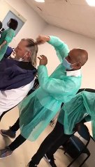 Marcelline avec le professeur Raoult à l’IHU de Marseille