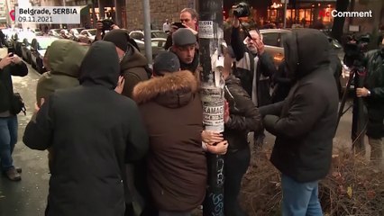 Des militants antifascistes voulaient recouvrir une peinture murale représentant le dirigeant des Serbes de Bosnie condamné en 2017 pour génocide lors du massacre de Srebrenica.