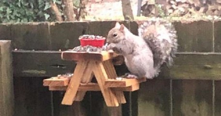 Plus d'infos sur : https://www.demotivateur.fr/article/un-homme-a-construit-une-mini-table-de-pique-nique-en-bois-pour-nourrir-les-ecureuils-de-sa-cour-19387